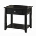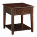 The Malachi End Table offers a Transitional Style in a warm Walnut Finish. The End Table Features One Top Drawer and tapered legs complemented by a bottom display shelf. KD Construction (Assembly Required)