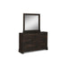 The Campbell Bedroom Collection is a stunning set that will elevate the look of any bedroom. Made from high-quality rubberwood solids and 3D paper lamination, this collection is both durable and stylish. The Ranchero finish gives the pieces a warm, rustic look that will complement any décor.The bed, dresser, mirror, chest, and nightstand all feature English dovetail drawers, ensuring that they are built to last. The center metal glide ensures smooth operation, while the polyurethane paper drawer finish adds an extra layer of protection and durability.
