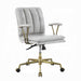 Furnish your office with the Damir high back office chair. This rolling swivel chair has fully adjustable lift height with exceptional lumbar support, and features luxurious top grain upholstery in vintage white with decorative vertical stitching, all beautifully accented by chrome-accented arms and base.