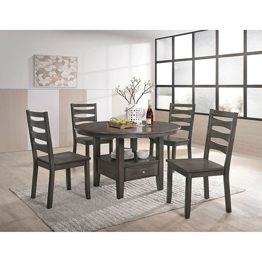 Add country charm to your dining decor with this dining table, featuring a round tabletop with molded trim and tapered legs. The side chairs showca...