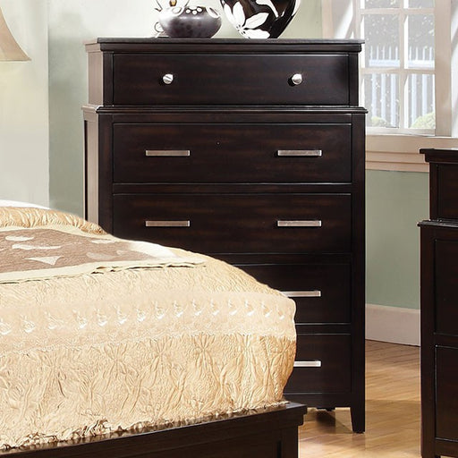 Available in espresso, this contemporary design case goods add an extra creative flair. The tiered design makes this chest a one-of-a-kind piece fo...