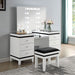 You take the time to get ready; this vanity is here to help. It combines the practicality of its multiple storage drawers and the convenience of the tall tri-fold mirror. Add to that the striking visual of the interplay between white and black. Fourteen light bulbs line the edges of the central mirror, illuminating the most important subject--you, sitting right in the middle of the glory and drama that this vanity brings. Product Dimensions: 20"W x 54"L x 30"H