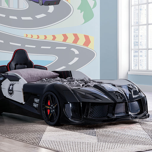 This is what dreams are made of! Create a fun-filled kids room with this sleek and comfy twin bed. A stylish interpretation of the real patrol cars...