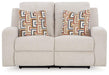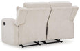 This reclining loveseat invites you to a luxuriously soft lounging experience. The chic hue fits right in with contemporary color palettes. A tufted back keeps the look right on trend. Balancing style and function, its pull tab reclining effortlessly takes you to relaxation mode.