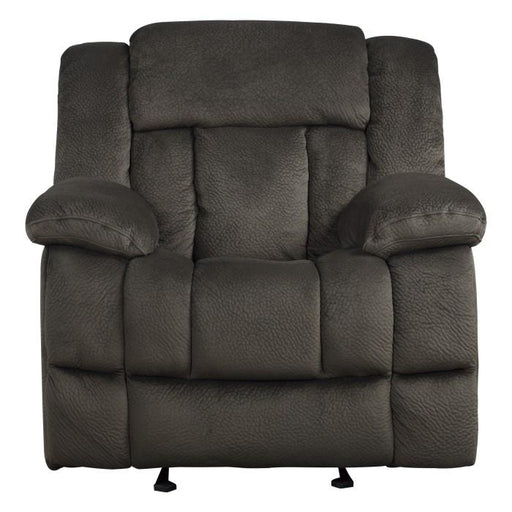 Homelegance (Fremont Warehouse)Aram Collection by Homelegance Furniture Dark Brown fabric covering Manual motion mechanisms with pull of a side-mounted tab Features a glider mec...