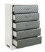 The Luxor Bedroom Collection is a sleek and modern addition to any bedroom. Made from birch and poplar solids and oak veneers, this collection exudes a stylish and contemporary feel.The collection includes a bed, a nightstand, a dresser, a mirror, and a chest. These pieces are upholstered in a combination of 3% faux leather, 70% PVC, and 27% Terylene, providing a durable and comfortable surface.The Luxor Bedroom Collection is available in black and white, allowing you to choose the color that best fits your personal style. Its sleek and modern design makes it a perfect choice for anyone looking to add a touch of contemporary style to their bedroom.
