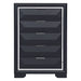 The modern design of the Rosemont Collection creates a striking profile for your bedroom. The midnight blue finish is reflected by the chrome banding that defines the front of the chest. Chrome pull hardware accents each of the raised drawer fronts. 36 x 17 x 52.5H